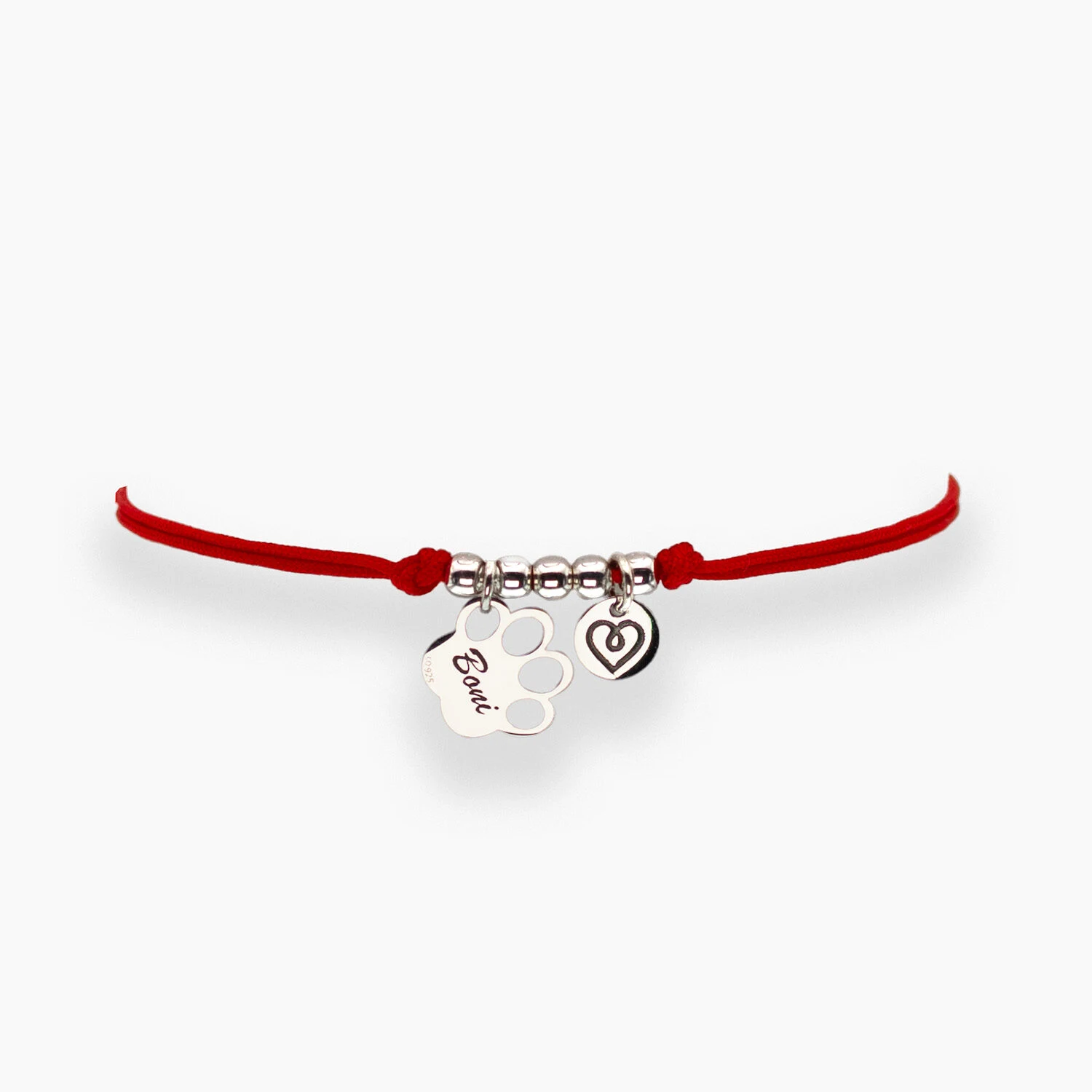 Stylowa pozłacana bransoletka na czarnym, regulowanym sznurku z ozdobnym wiązaniem typu makrama. Zdobiona czterema pozłacanymi kuleczkami oraz dwiema zawieszkami: psią łapką na grawer oraz kółeczkiem z wygrawerowanym serduszkiem. Ta bransoletka z łapką psa idealnie podkreśla subtelną elegancję – czarny sznurek i złocone elementy tworzą ponadczasowe połączenie. Produkt umieszczony jest na ozdobnym kartoniku z napisem „Najlepszy Przyjaciel” i zapakowany w elegancką kopertę.