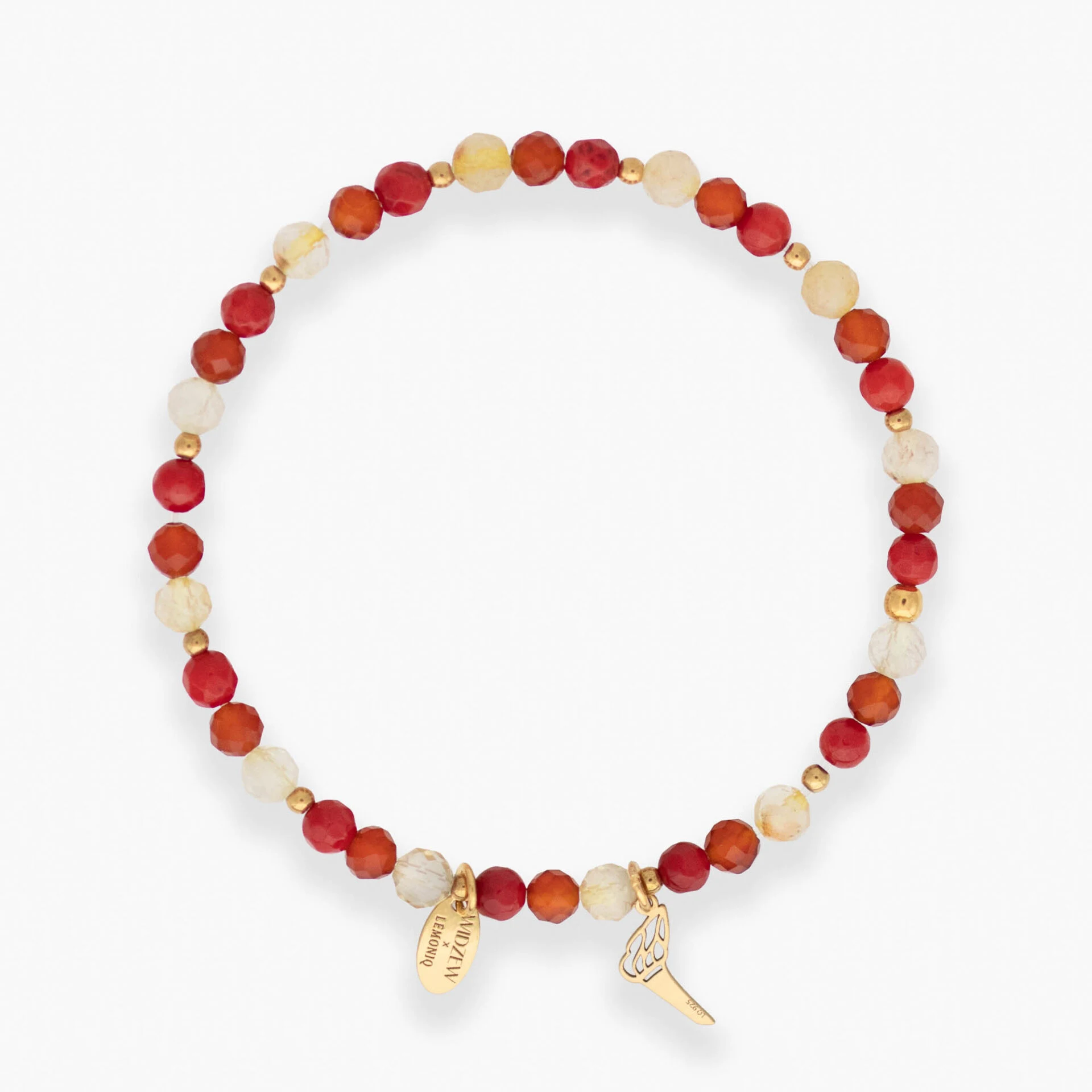 Kobieca bransoletka stworzona z myślą o Kibickach Widzewa Łódź, które chcą nosić klubowe barwy w subtelnej, eleganckiej formie. Bransoletka wykonana jest z naturalnych kamieni: cytrynu, karneolu oraz korala, ułożonych w barwy klubowe, symbolizujące pasję, energię i przywiązanie do Widzewa Łódź.