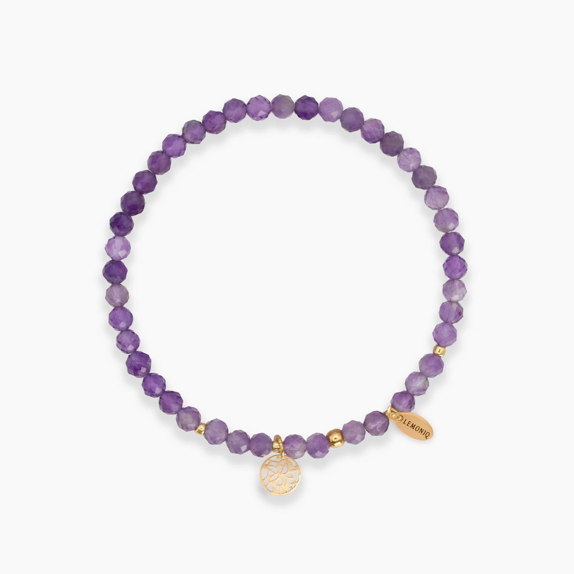 Elegancka bransoletka wykonana z naturalnego ametystu o subtelnym, szlachetnym blasku. Całość dopełniają pozłacane elementy ze srebra 925 oraz delikatna, ażurowa zawieszka w formie kółeczka, nadająca biżuterii lekkości i finezji. Bransoletka została wykonana na elastycznej gumce, zapewniając komfort i wygodne dopasowanie do nadgarstka na co dzień.