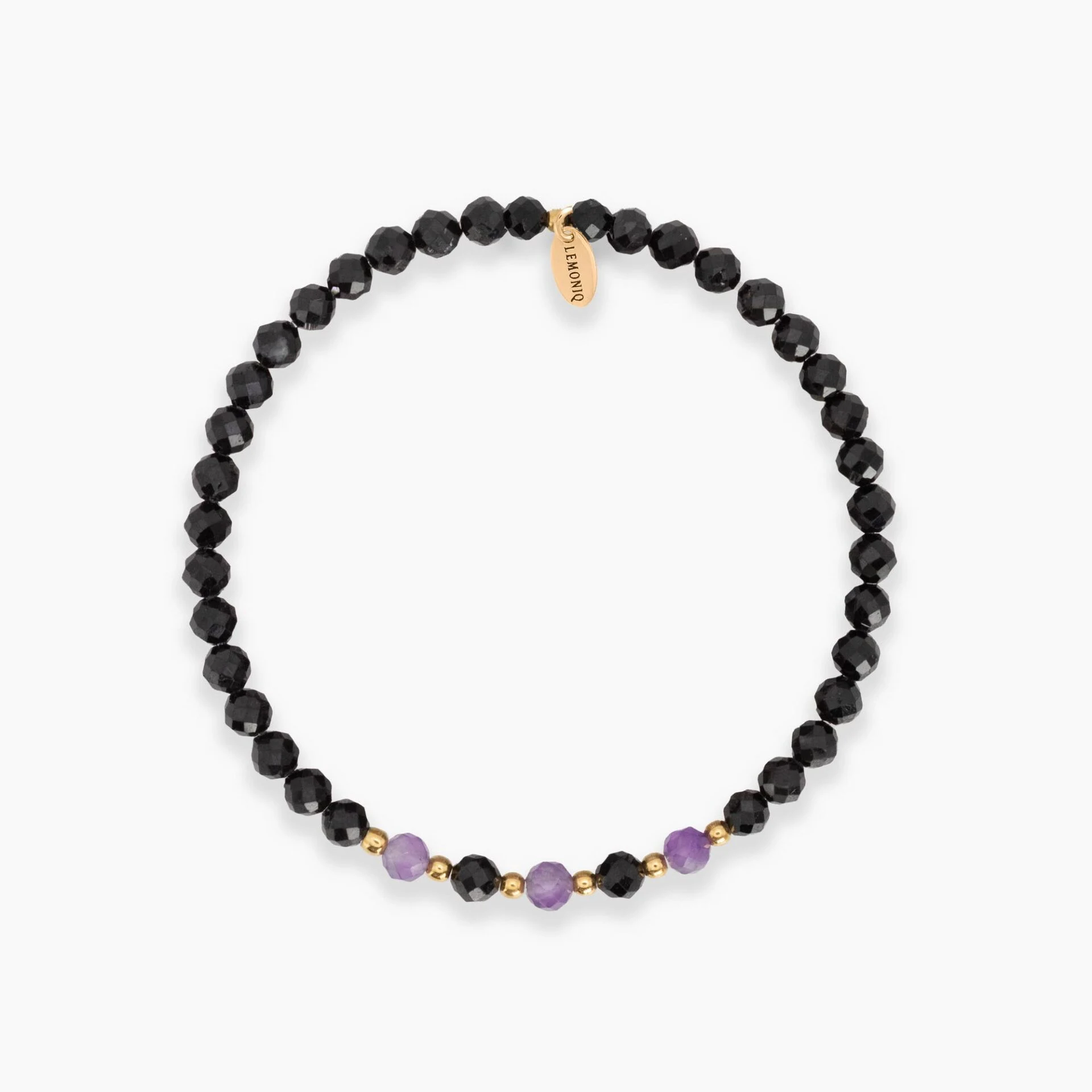 Uważa się, że czarny turmalin wspiera poczucie ochrony i stabilności, natomiast ametyst kojarzony jest ze spokojem, równowagą i klarownością umysłu. To subtelne połączenie nadaje bransoletce wyjątkowego, symbolicznego charakteru, łącząc estetykę z delikatnym przesłaniem.