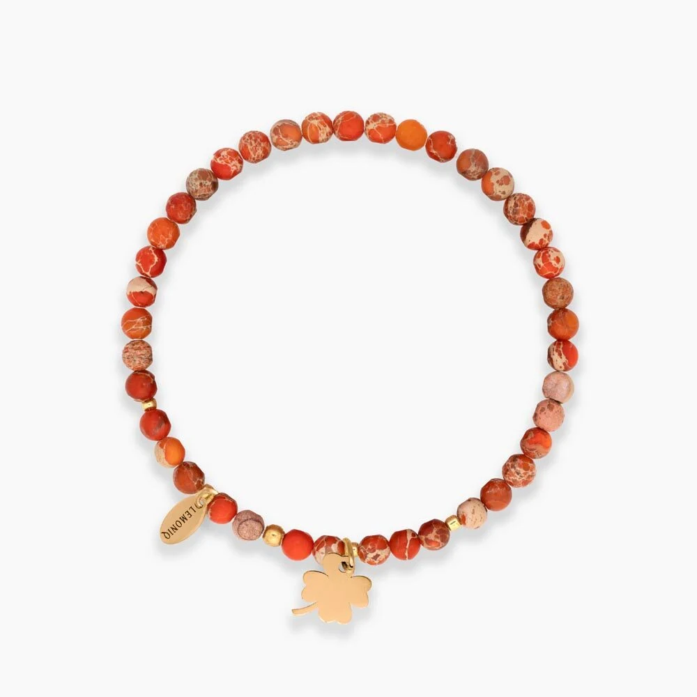 Bransoletka z kamieni naturalnych – jaspis pomarańczowy, koniczyna, srebro 925 pozłacane